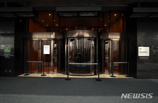 [서울=뉴시스]이윤청 기자 = 신종 코로나바이러스 감염증(코로나19) 장기화로 호텔 등 숙박업 경영난이 지속하고 있는 1일 서울 서초구 쉐라톤 서울 팔래스 강남호텔이 지난달 31일부로 영업을 종료해 한산하다. 2021.02.01. radiohead@newsis.com