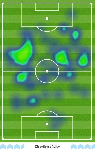 전반전 리버풀은 티아고의 볼배급과 로버트슨의 적극적인 오버래핑에 더해 샤키리의 전진 패스가 효과적으로 어우러지면서 왼쪽 측면 위주의 공격을 전개했다. 티아고는 스위칭 플레이를 통해 오른쪽 구역을 커버하기도 했으나 기본적으로는 왼쪽으로 자주 빠지는 동선을 가져갔다(하단 사진 히트맵 참조)