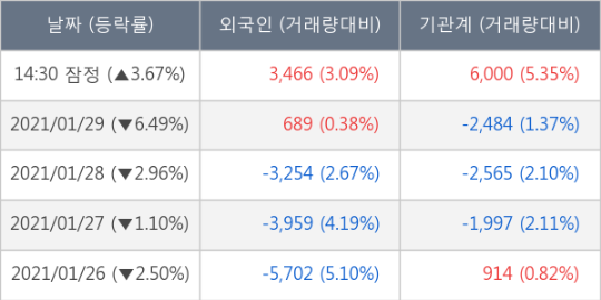거래량은 12만1192주로 전거래일 대비 66.41% 수준이다.