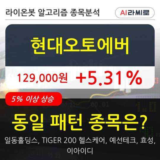 ※ 사모펀드 등 일부 기관의 순매매량은 표시되지 않음이 시각 거래소에서 현대오토에버 이외에도 일동홀딩스(7.72%), TIGER 200 헬스케어(5.18%), 예선테크(6.45%), 효성(7.01%), 이아이디(9.73%) 등이 상승세를 보이고 있다.