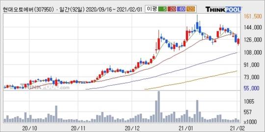 현대오토에버, 주가 반등 현재는 +5.31%.. 이 시각 거래량 12만1192주
