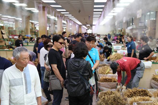 금산시장은 전국 인삼 생산량의 80%가 거래되는 대한민국 최대 인삼약초 시장이다. 진품 금산인삼이 시장 곳곳에 산더미처럼 쌓여 있는 풍경은 이곳을 찾는 고객들에게 믿음을 준다.