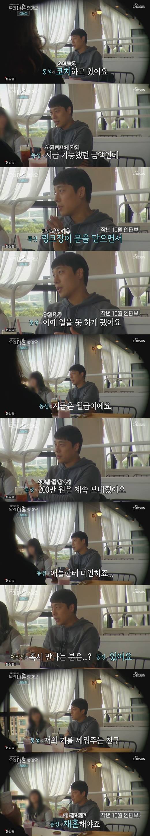 김동성은 "사건 터지기 전에는 지급 가능했던 금액이다. 원래는 성인들을 가르쳤다. 코로나19 이후 링크장이 문을 닫으면서 아예 일을 못 하게 됐다. 지금은 월급이다"라고 밝혔다.