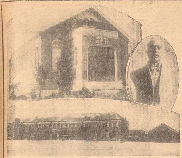 | ▲ 후쿠시 교장 기념 도서관과 흉상 부산상업학교에서 헌신적으로 교육활동을 한 후쿠시 교장을 많은 제자들은 기억하고 있어 그를 기념하는 도서관과 흉상을 동창회에서 1934년 세웠다. 출처: 朝鮮新聞(1934.10.30) |