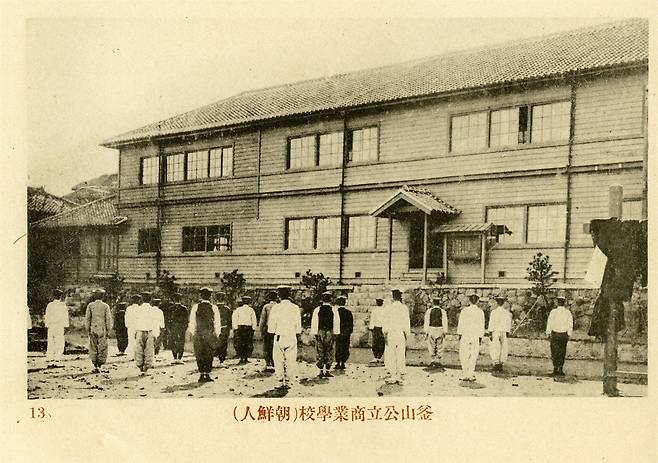 | ▲ 1915년 부산공립상업학교 부산지역의 조선인이 다닌 상업학교인 부산공립상업학교이다. 이 건물은 1916년 대화재로 전소하였으며 학교 관련 자료 역시 불타 당시의 사료가 없다. |