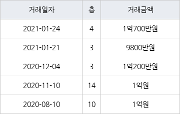 [이 기사는 조선비즈와 아티웰스가 공동으로 개발해 서비스하는 로봇 기사입니다.]국토교통부 실거래가 공개시스템에 따르면 지난 2021년 1월 21일 부산광역시 북구 금곡동 금곡주공3단지아파트 3층 전용면적 49㎡형이 9800만원에 거래됐다.