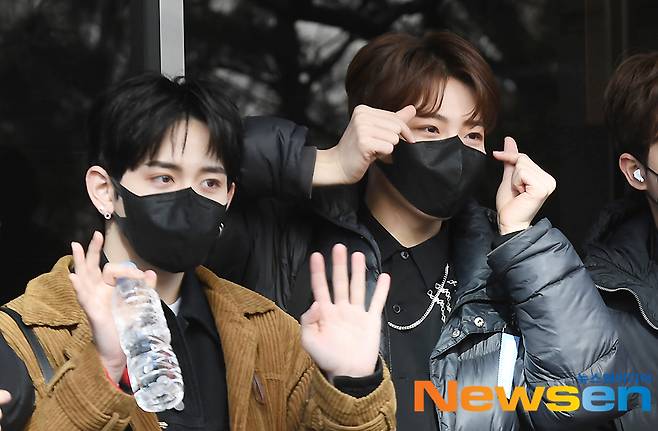 그룹 트레저 마시호, 준규(사진 오른쪽)가 2월 2일 오후 방송녹화 일정을 위해 서울 영등포구 여의도동 KBS 신관으로 향하고 있다.