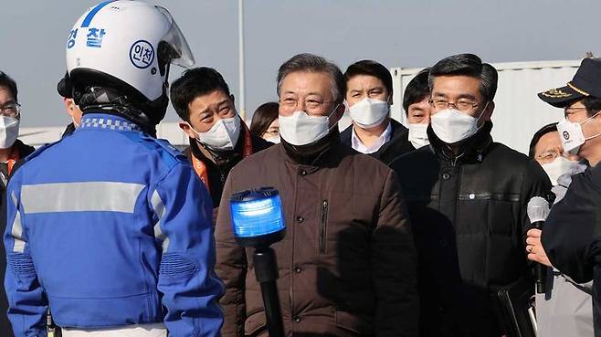 문 대통령은 오늘(3일) 오전 인천공항에서 열린 코로나19 백신 유통을 위한 민관군경 합동 모의훈련을 참관하며 정은경 질병관리청장 등에게 이 같이 말했습니다.