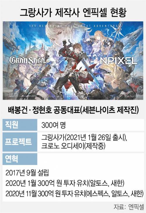 업계는 그랑사가의 장기 흥행 여부에 주목하고 있다. 3N 등 대형 게임사 위주로 재편된 국내 게임 생태계에 새로운 피가 수혈될 수 있다는 기대감이다. 엔픽셀은 그랑사가에 이어 신작 ‘크로노 오디세이’를 준비 중이기도 하다. 업계 한 관계자는 “배·정 대표는 세븐나이츠로 이미 수천억원대 자산을 쌓은 성공한 기업가”라며 “검증된 스타 기획자가 안주하지 않고 새로운 시도에 나서고, 새 개발사와 IP가 등장하며 게임계에도 활력이 더해지고 있다”고 말했다.