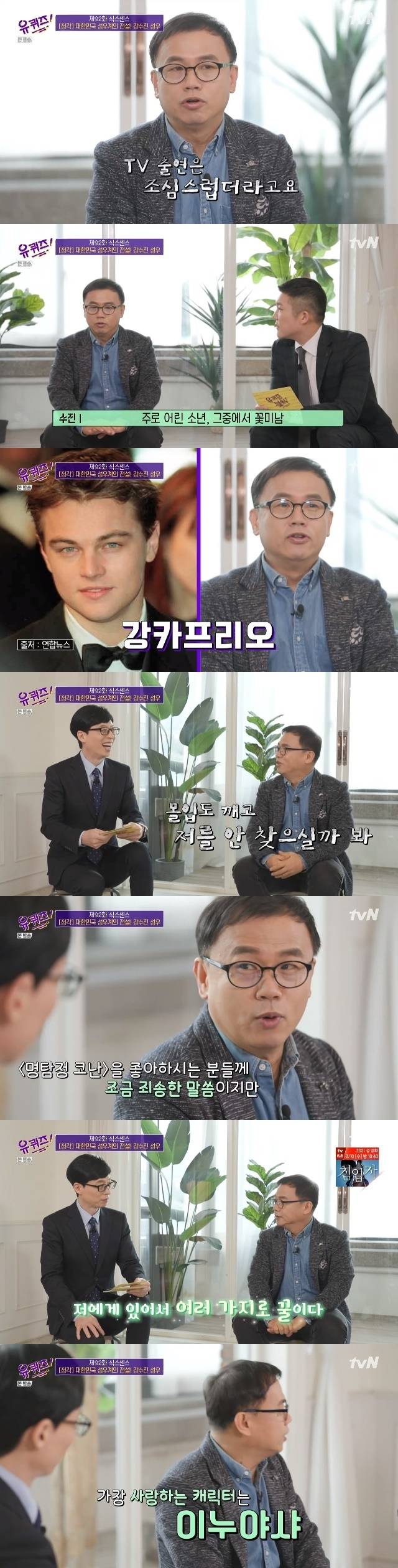 이날 '유 퀴즈'를 찾은 34년 차 성우 강수진은 '슬램덩크' 강백호, '소년탐정 김전일' 김전일, '명탐정 코난' 남도일, '이누야샤' 이누야샤, '원피스' 루피, 더빙 외화 속 레오나르도 디카프리오의 목소리를 연기한 인물. 그는 지금까지 맡은 목소리로 "애니메이션은 2,500편에서 3,000편 정도"라고 밝혔다.