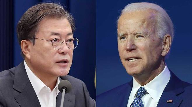 당시 문 대통령은 "한반도와 역내 평화·번영의 기반이 돼온 한미동맹의 미래지향적 발전과 한반도 비핵화 및 평화 정착을 위해 긴밀히 소통하자"고 말했고, 바이든 당선인은 "북핵 문제 해결을 위해 긴밀히 협력하겠다"고 밝혔습니다.
