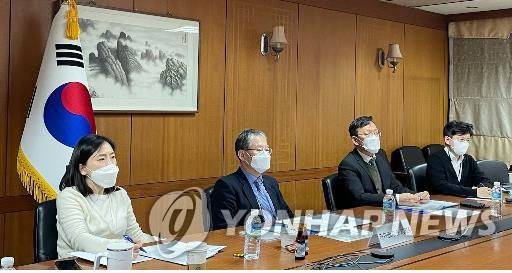사진은 이날 한국 대표로 회의에 참석한 최경림 G7 협의체 셰르파(왼쪽 두 번째)와 관계자들. 2021.2.4 [외교부 제공. 재판매 및 DB 금지]