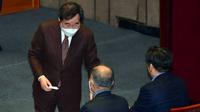 더불어민주당 이낙연 대표가 '법관(임성근) 탄핵소추안'에 대해 투표하고 있다.