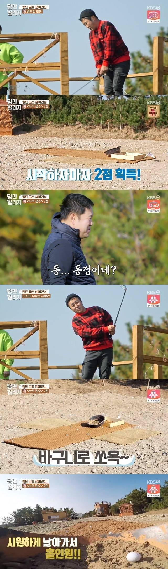 2월 4일 방송된 KBS 2TV 예능 '땅만빌리지' 12회에서는 김구라, 김병만이 즉석에서 만든 골프장으로 누적 점수 내기를 했다.