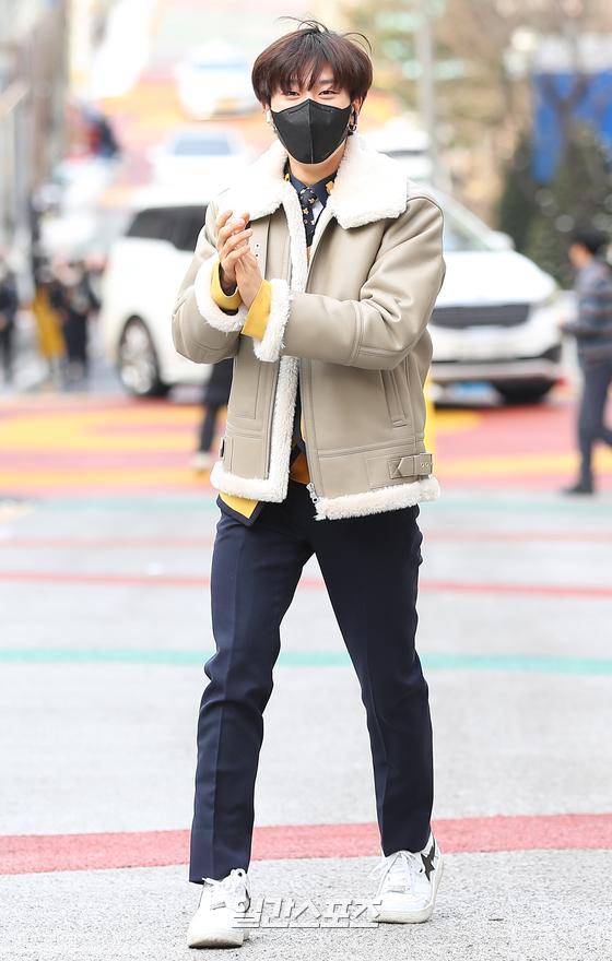 그룹 트레저 방예담이 5일 오전 서울 구로구 서울공연예술고등학교에서 열리는 졸업식에 참석하며 포즈를 취하고 있다.