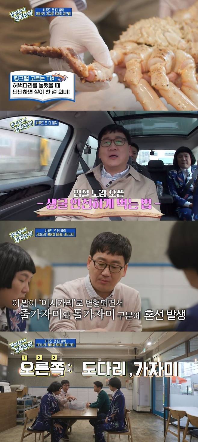 네 사람은 첫 방송 '떡볶이 특집' 때와 마찬가지로 이번엔 '해산물' 먹방에 나섰다. 이번에도 동호회라는 컨셉으로 김지민 작가가 동호회 회장으로서 세 사람을 해산물의 세계로 이끌었다.