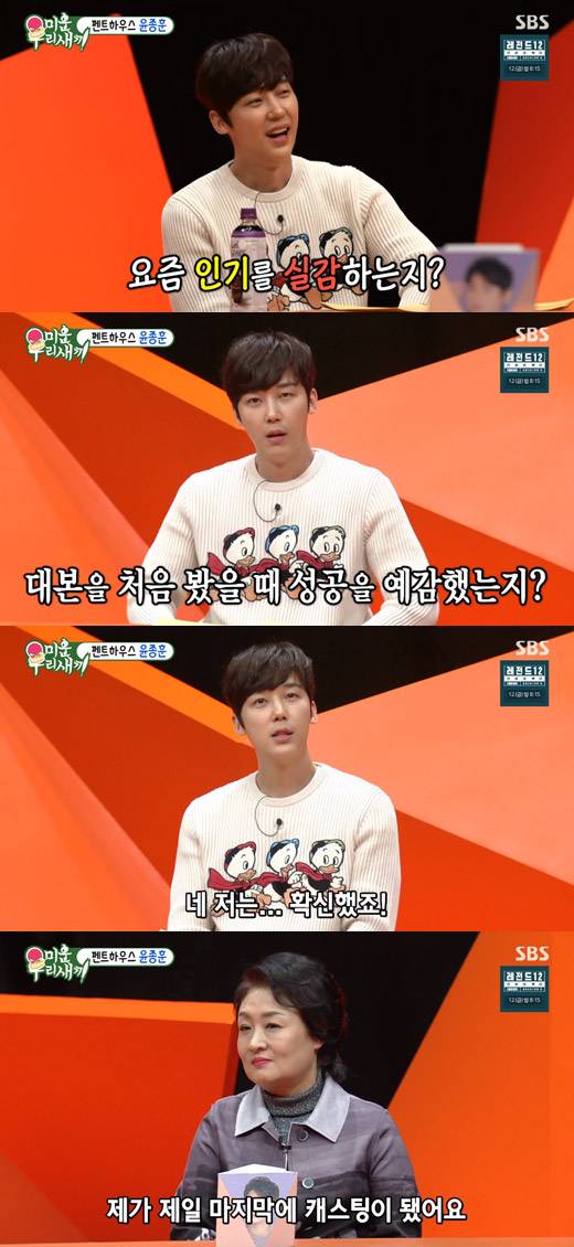 7일 방송된 SBS '미운 우리 새끼(이하 '미우새')'에선 스페셜 MC로 배우 윤종훈이 출연했다.