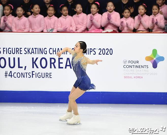 [엑스포츠뉴스 박지영 기자] 2020년 2월 10일, 서울 목동아이스링크에서 국제빙상경기연맹(ISU) 2020 4대륙 피겨스케이팅 선수권대회가 열렸다. 이날 유영은 싱글 프리스케이팅에서 기술점수(TES) 79.94점, 예술점수(PCS) 69.74점, 합계 149.68점을 기록했다.