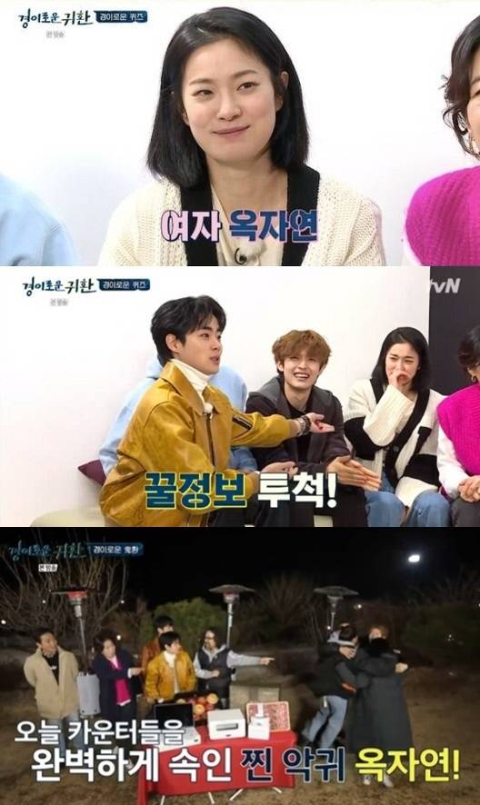 다수의 게스트들 사이 옥자연은 차분한 모습을 보였지만 게임이 이어지면서 점차 승부욕 넘치는 모습을 보였다. 극중 악귀의 모습과 다른 모습에 노홍철은 “이제 슬슬 성격이 나온다. 배운 사람이나 덜 배운 사람이나 똑같구나 느꼈다”라고 너스레를 떨었다.