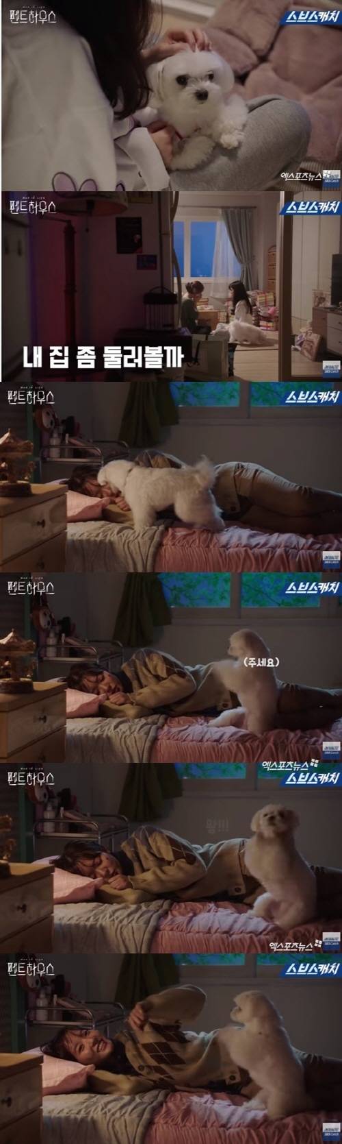 설탕이는 두 발로 서서 앞발을 흔드는 애교를 부리며 간식을 달라고 재촉했다. 그럼에도 조수민은 침대에 누워 진지하게 연기를 이어갔다. 하지만 설탕이는 간식을 더 달라며 짖었다. 조수민은 "아 어떻게 해"라며 NG를 내 웃어 보였다.
