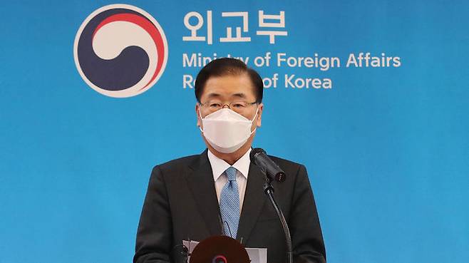 정 장관은 취임사에서 한국 외교가 처한 상황 인식도 밝혔습니다. 정 장관은 "국제 정세의 불확실성이 심화되고 있어 선제적이고 전략적인 외교가 요구되는 시점"이라며 그 해결책으로 앞서 강조한 '한반도평화프로세스'와 함께 ① 한미 동맹의 보다 건전하고, 호혜적이며, 포괄적인 발전과, ② 중국, 일본, 러시아, 아세안, EU 등과의 평화 번영을 위해 노력하며, ③ 선진국과 개도국을 잇는 중견국 외교를 지속하고, ④ 보건 협력과 세계 정세 회복, 기후변화, 민주주의와 인권, 비전통 안보 분야의 국제사회 노력에 동참하겠다는 총 4가지 노력을 거론했습니다.