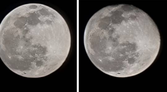 실제 보름달을 촬영하고 사흘 뒤에 같은 장소에서 달을 촬영해본 결과, 달 사진은 똑같지 않았습니다. 단순히 생각했을 때 기존에 있는 달 사진을 붙여 넣는 건 아니라는 것이죠. 보름달일 때는 완벽한 구체 형태의 달을 제시했지만 사흘 뒤엔 달의 윗부분이 흐려진 타원형태의 달을 보여줬습니다. 100배줌 뿐만 아니라 30배줌에서도 달 모드를 지원하는데요. 사진을 어떻게 찍느냐에 따라 결과가 달라지지만 30배줌으로 찍고 확대했을 때와 100배줌으로 찍었을 때 품질에서 큰 차이는 없었습니다.