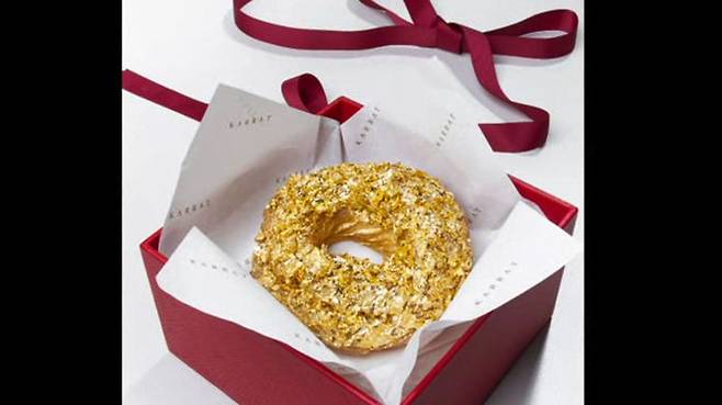 번쩍번쩍 빛까지 나는 바로 이 도넛인데요, 눈이 부실 정도로 많은 금가루에 뒤덮여 있습니다.