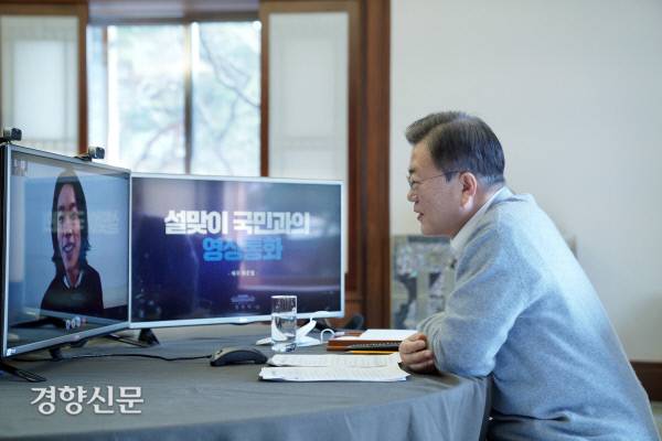 - [경향포토]문재인 대통령, 설 맞아 국민 8명과 영상통화...감사와 위로의 마음 전해