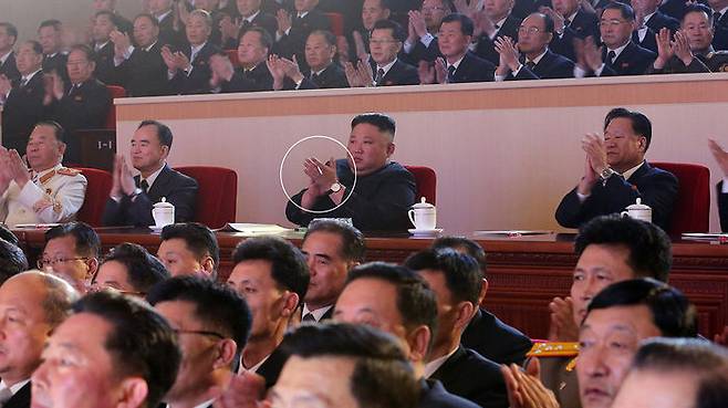 김정은, 금연법에도 관람석서 흡연..어제 설 기념공연 관람