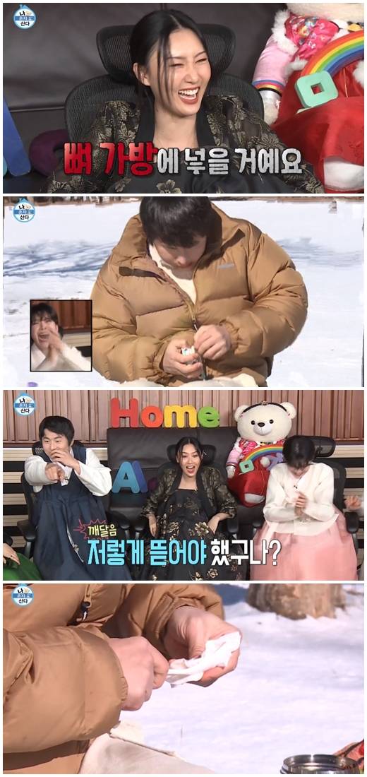 기안84는 밥을 먹다가 나오는 닭뼈를 가방에 넣었다. 성훈은 “바닥에 버릴수 없으니까”라며 이해했다. 장도연, 박나래, 화사 등은 기안84의 기상천외한 행동에 웃음을 터뜨렸다.