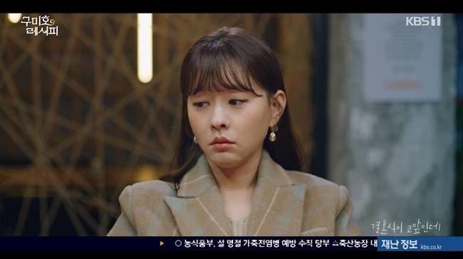 2월 13일 방송된 KBS 1TV 설 특집 뮤지컬 드라마 '구미호 레시피'(극본 경민선, 연출 김대현)에는 윤호(무진성 분)과 결혼을 앞둔 선영(김나니 분)이 날카로운 촉을 발동하는 모습이 담겼다.