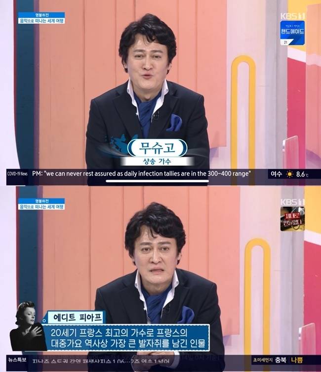 2월 15일 방송된 KBS 1TV '아침마당' 명불허전 코너에서는 국내 유일 남자 가수 무슈고가 출연했다.