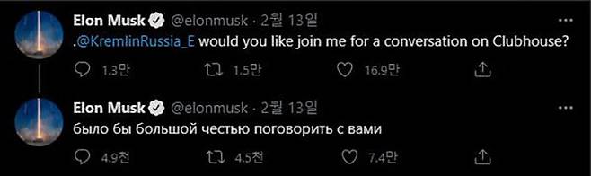 머스크는 지난 13일 자신의 트위터에서 푸틴 러시아 대통령의 공식 트위터 계정 앞으로 "클럽하우스에서 저와의 대화에 참여하고 싶은가요?"라는 글을 남겼습니다.