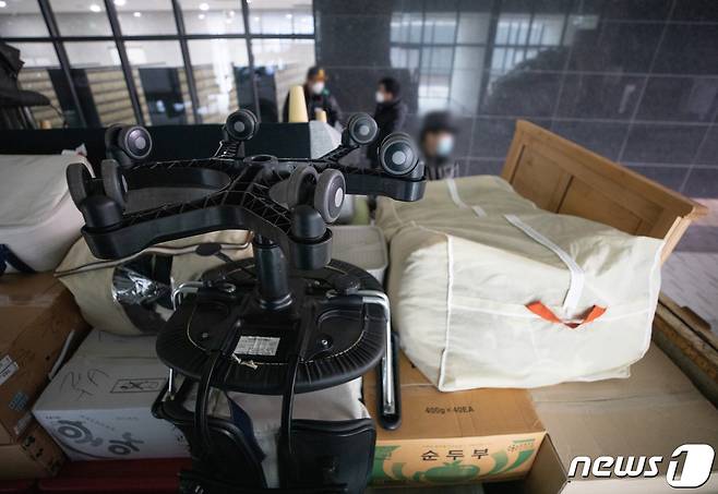 사진은 15일 오전 서울 용산구 용산베르디움 프렌즈에서 관계자들이 이삿짐을 옮기고 있다. 2021.2.15/뉴스1