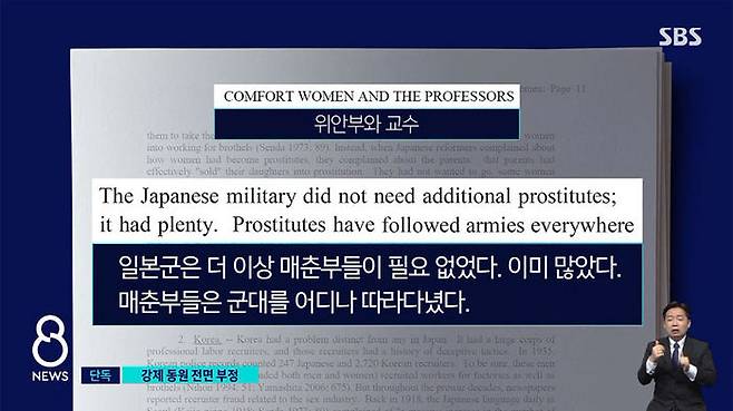 이 전제 하에 매춘부들과 포주들의 계약 문제를 꺼내 듭니다. 이번에 문제가 된 논문이 게임 이론에 근거해 위안부 피해자들이 자발적으로 계약을 맺고 매춘부가 됐다는 주장을 해 문제가 됐는데, 이렇게 경제학으로 포장된 주장에는 '강제동원은 없었다'는 게 전제로 깔려 있었던 겁니다. 학술지에는 그 주장을 노골적으로 쓰지는 않았지만, 이번에 확인한 논문 초안에는 램지어 교수의 생각의 근원이 무엇인지 정확히 나와 있었습니다.