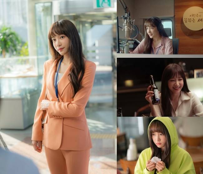 카카오M이 공개한 스틸컷에서는 어린 나이에 아나운서로 성공해 주목을 받은 이란주의 다채로운 매력이 고스란히 포착되어 눈길을 끌고 있다. 세련된 수트 차림에 방송국 출입증을 목에 건 모습과 프로페셔널함이 느껴지는 라디오 부스 속 그녀의 모습에서는 자신의 커리어를 사랑하는 아나운서 이란주만의 당찬 매력이 뿜어져 나온다.