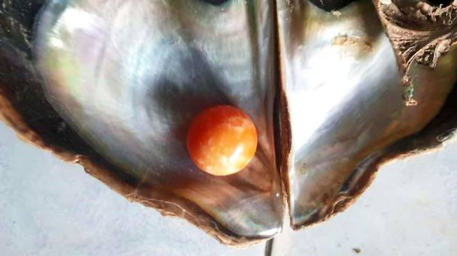 고둥을 삶아 함께 먹던 중 아들이 "딱" 소리를 내며 뭔가를 뱉어냈고, 신비로운 주황빛을 띤 구슬, 바로 희귀한 멜로 진주였습니다.