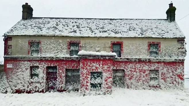 아일랜드의 한 마을에서 집 한 채가 하얀 거품에 뒤덮였습니다.