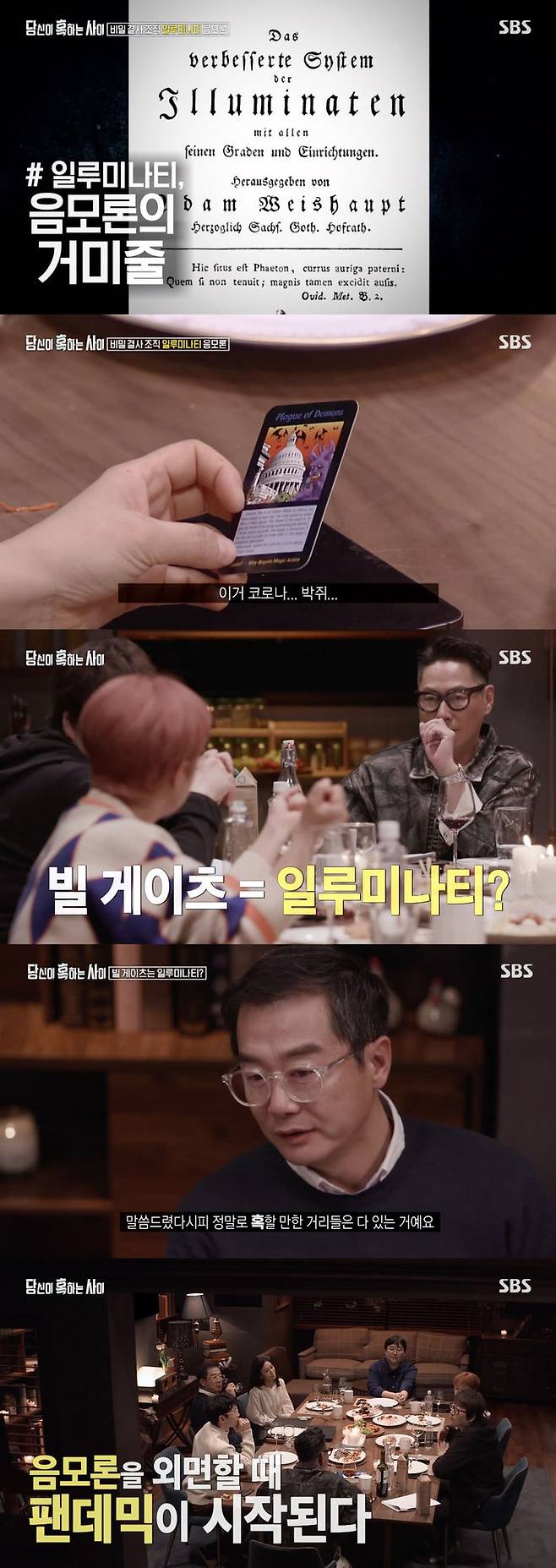 이날 방송에서 멤버들은 코로나 19와 빌 게이츠의 음모론을 조명했다. 그리고 이 이야기는 일루미나티로 이어졌다.
