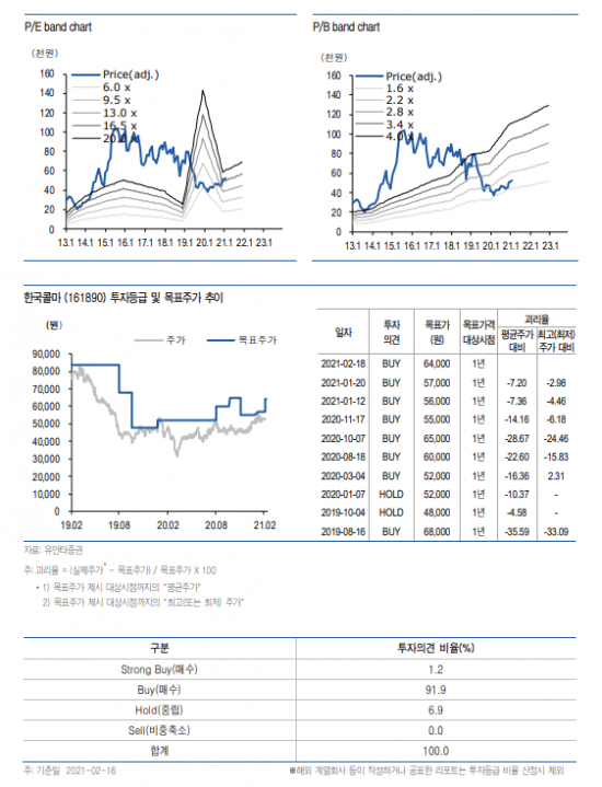 유안타증권은 18일 한국콜마에 대해 제약사로 변모하면서 실적이 개선될 것으로 보여 투자의견 '매수' 유지와 목표주가를 6만4000원으로 상향한다고 밝혔다.