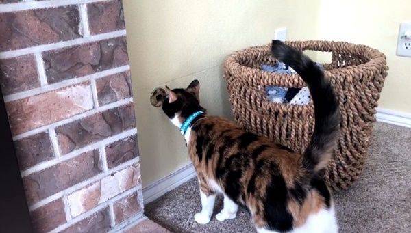 지난 12일 평소와 다를 바 없이 마틴 씨와 장난감 놀이를 하던 릴리는 돌연 몸을 틀어 어디론가 향했습니다. 뒤를 쫓아가 보니 릴리는 벽난로 옆 벽면을 향해 얼굴을 딱 붙이고 서 있었는데요, 릴리의 흥미를 끈 정체는 바로 벽난로로 통하는 '가스 밸브'였습니다.