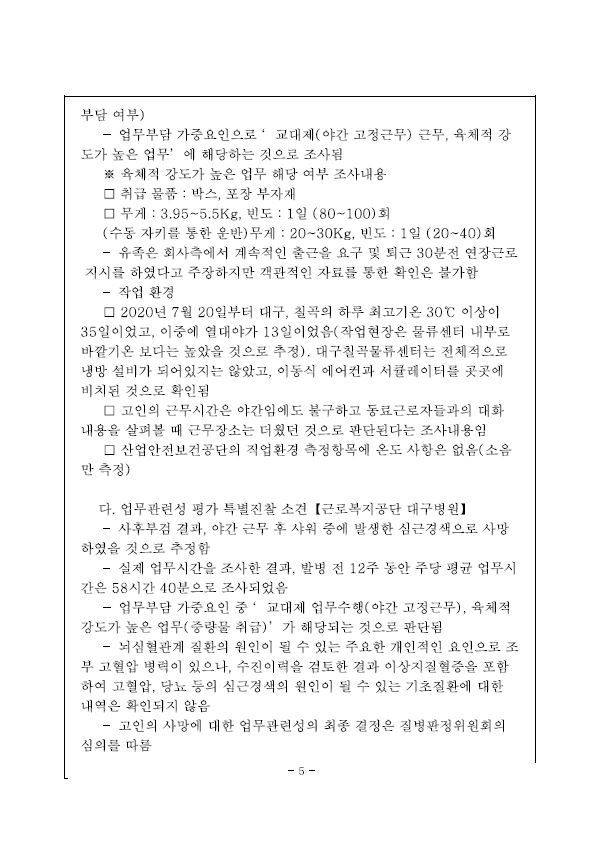 보고서에는 장 씨가 숨지기 전 마지막 일주일 동안 주 62시간 10분이라는 장시간 노동을 했고, 장 씨의 업무강도가 사망에 영향을 미쳤다고 적혀 있습니다.