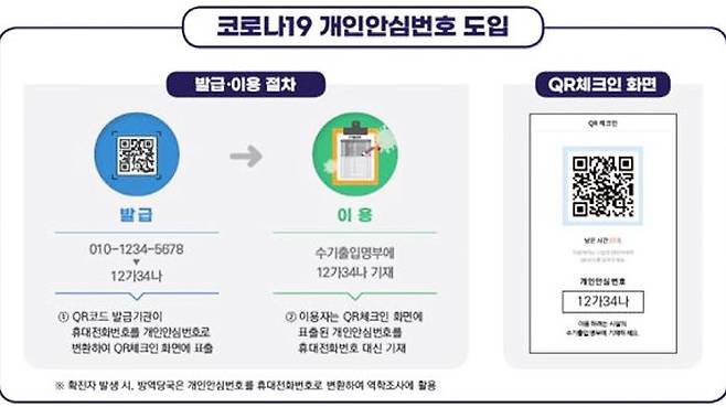 개인정보보호위원회와 중앙방역대책본부는 오늘부터 다중이용시설을 이용하며 써야 했던 수기명부에 휴대전화 번호 대신 개인안심번호를 쓸 수 있도록 했다고 밝혔습니다.