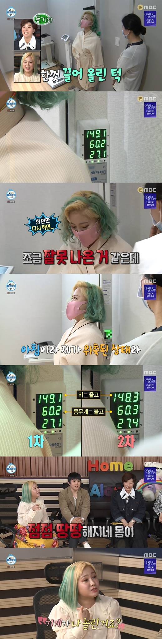 이에 박나래는 "선생님. 조금 잘못 나온 것 같은데 다시 한 번 해보면 안 되겠냐"고 물었고, 다시 잰 결과는 키 148.3cm, 몸무게 60.3kg이었다.