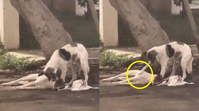 지난 14일 저녁, 시민들은 도로 가장자리에 쓰러져 가쁜 숨을 몰아쉬고 있는 개 한 마리를 발견했습니다. 그런데 이들이 가까이 다가가려는 순간, 쓰러진 개와 똑 닮은 다른 개가 등장해 으르렁거리며 앞을 가로막았습니다.