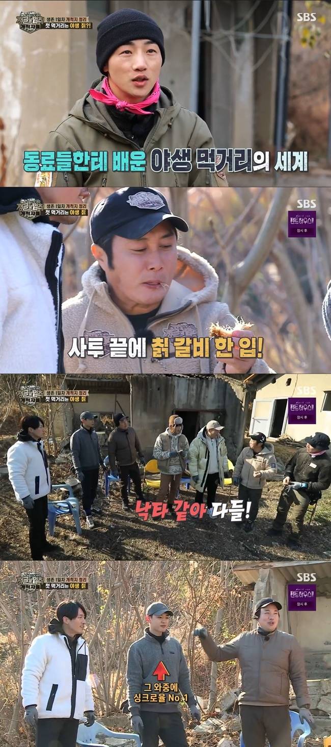 또한 김병만은 입으로 거침없이 칡 껍질을 벗겼고 이를 본 신승환은 "갈비 뜯냐"고 물었다.