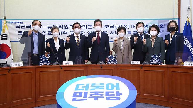 오늘 오전 국회에서 열리는 당정협의에는 당에서 이낙연 대표와 국난극복K-뉴딜위원회 본부장인 김한정 박찬대 의원, 이수진(비례) 신현영 의원 등이 참석합니다.