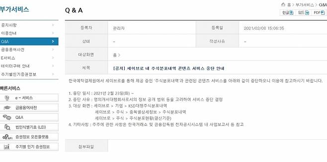 예탁원이 2013년 세이브로 서비스를 시작한 이래 시스템 점검 등의 이유로 서비스를 일시 중지한 사례는 있지만 주주 정보 제공 서비스를 완전히 멈추는 건 처음이다.