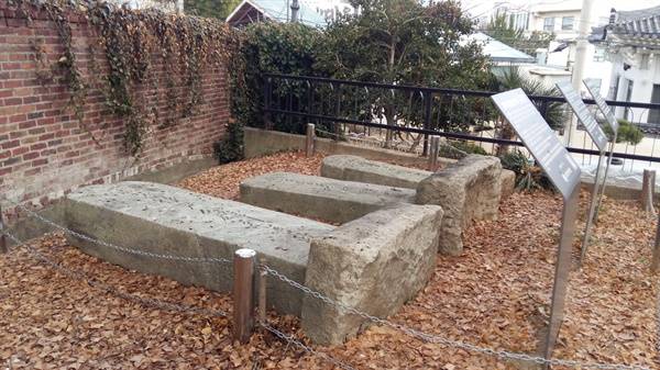 친일파들의 선정비가 뽑힌 채 누워있는 '광주공원 선정비군'