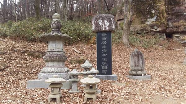 | ▲ 원효사를 창건한 원효국사탑과 원효사를 중건한 원담화상탑 등 고승들의 부도가 즐비한 원효사 부도전에 친일인명사전에 등록된 송화식의 부도비가 떡하니 서 있다 |